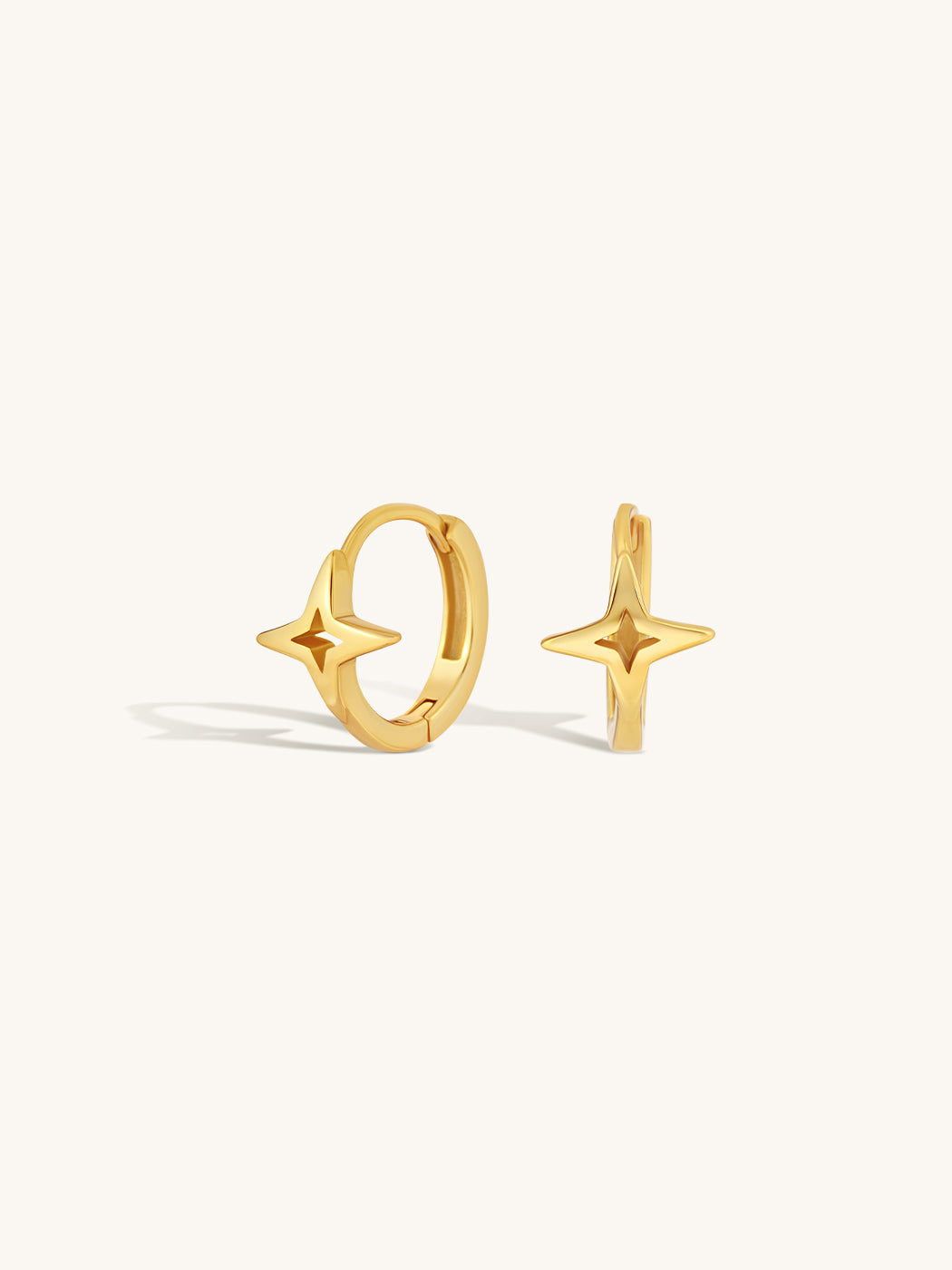 It’s written in the stars. Minimalist one click huggies, crafted with a star shape along the curve. These beauties will get you through even your dreariest of days with a little golden shine.